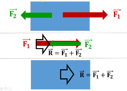 Kui kehale mõjuvad jõud on samasuunalised, siis nende mõjud liituvad – resultantjõu moodul on võrdne komponentide moodulite summaga.