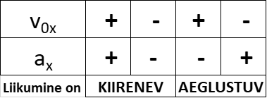 Vaatleme olukorda, kus keha liigub kiirenevalt st v0x>0 ja ax>0. Rõhutagem siinjuures, et samale tulemusele jõuaksime ka aeglustuva liikumise korral. Kirjeldatud juhtumil on kiiruse graafikuks tõusev sirge.