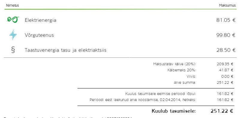Kliendi poolt tarbitava elektrienergia maksustamine on üsna keerukas. Elektriarve koosneb paljudest komponentidest, millest tasu tarbitud energia eest võib moodustada kõigest mõnikümmend protsenti. Arvel kajastub ka energia ülekandetasu, taastuvenergia tasu, elektriaktsiis, samuti käibemaks.