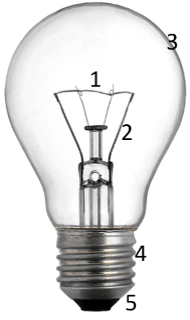 Hõõglamp koosneb järgmistest osadest: (1) hõõgniit, (2) tugitraat, (3) klaaskolb, (4) sokkel ja (5) põhjaklemm.