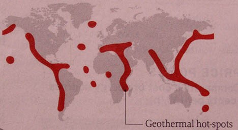Neid piirkondi nimetatakse „kuumadeks punktideks“ (pildil) ning nad asuvad mandrilaamade kokkupuute piirkondades (alumisel fotol on kujutatud Islandil asuv geotermaalelektrijaama)