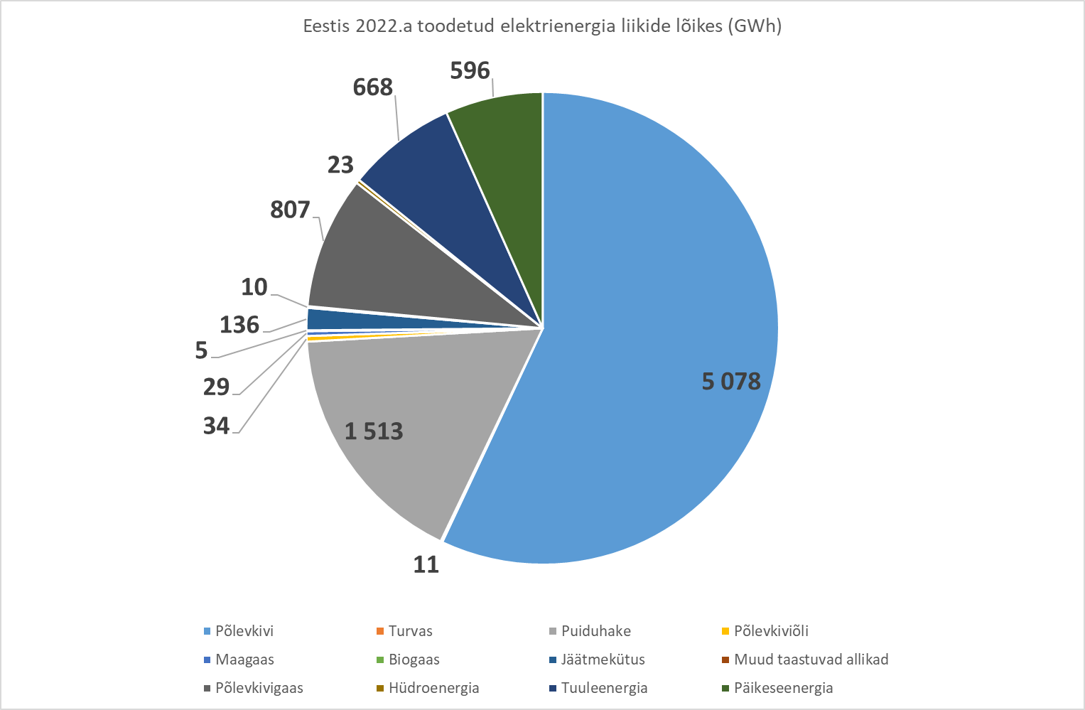 Juuresoleval diagrammil on näha millistest energiaallikatest kui palju elektrienergiat toodeti